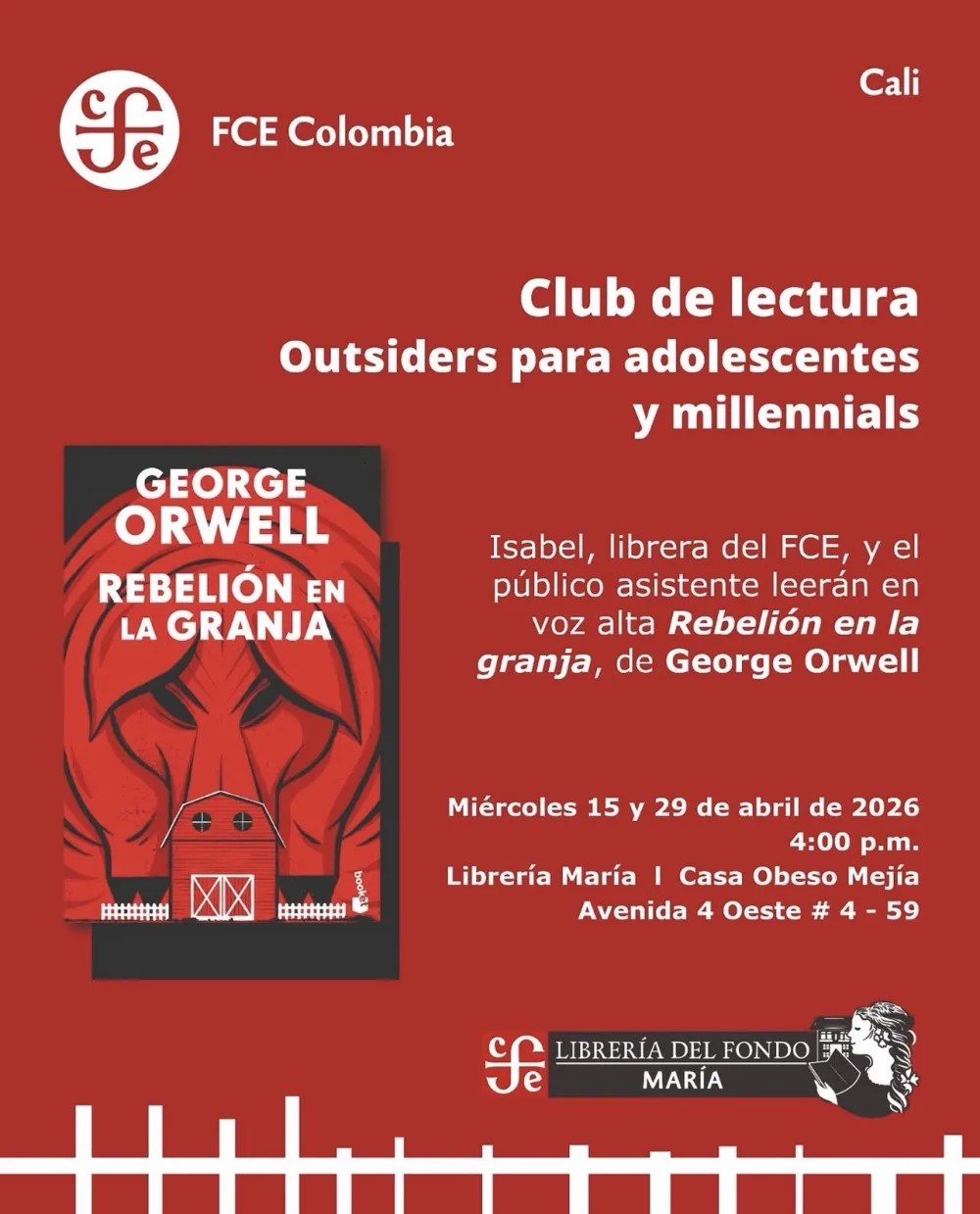 Isabel, librera del FCE, y el público asistente leerán en voz alta Rebelión en la granja, de George Orwell